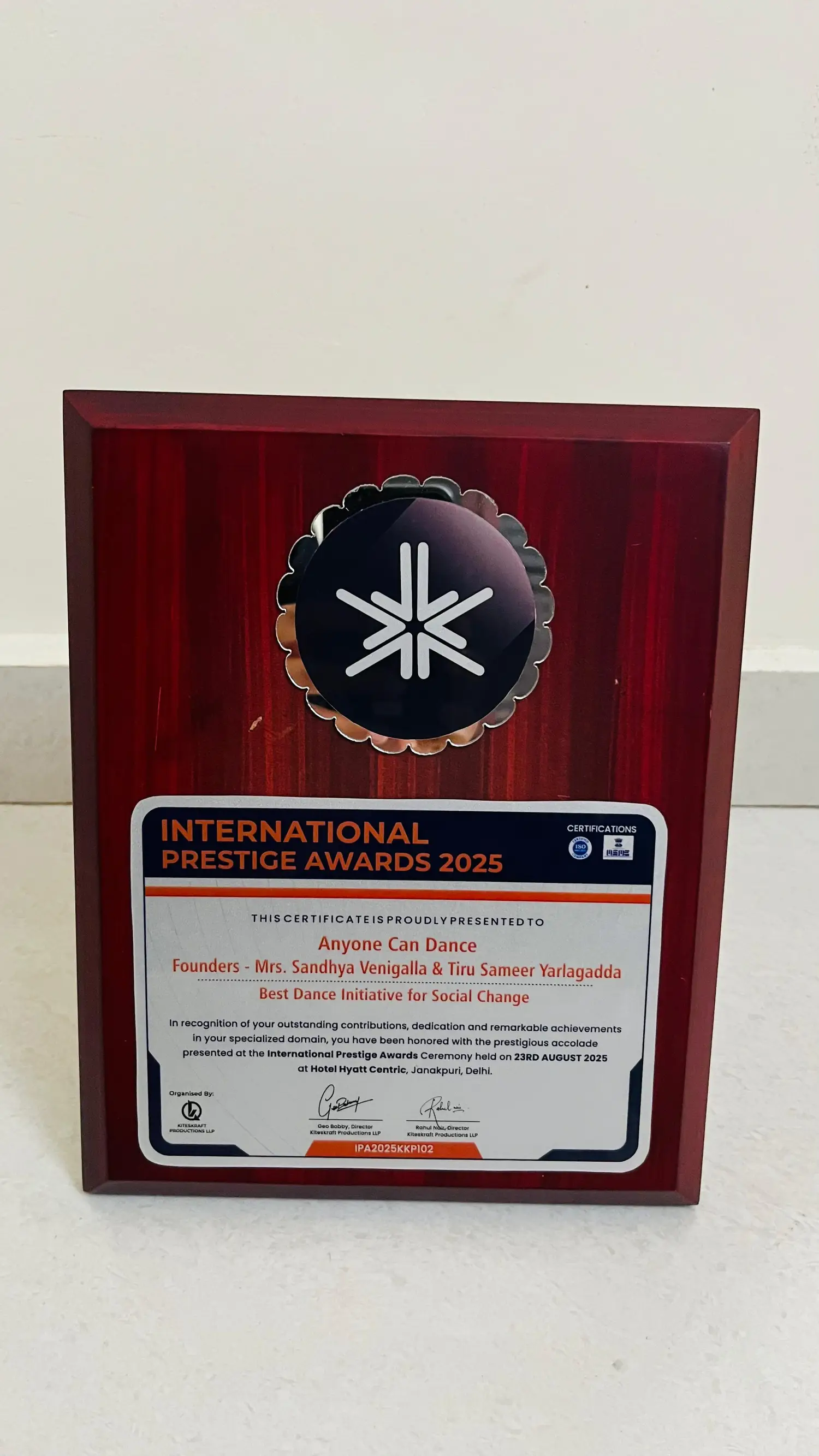 "Best Dance Initiative for Social Change, 2025" - Recognized for empowering marginalized communities and creating measurable social impact through the transformative power of dance.